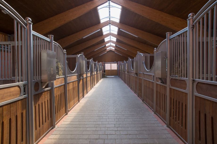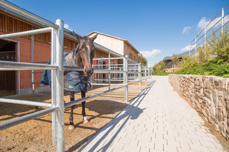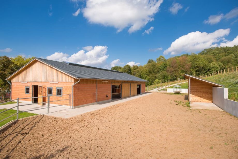 - Stallgebäude mit direktem Zugang zur Reithalle für einen trockenen Übergang