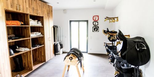 - jedes Stallgebäude besitzt eine eigene Sattelkammer und einen Waschplatz